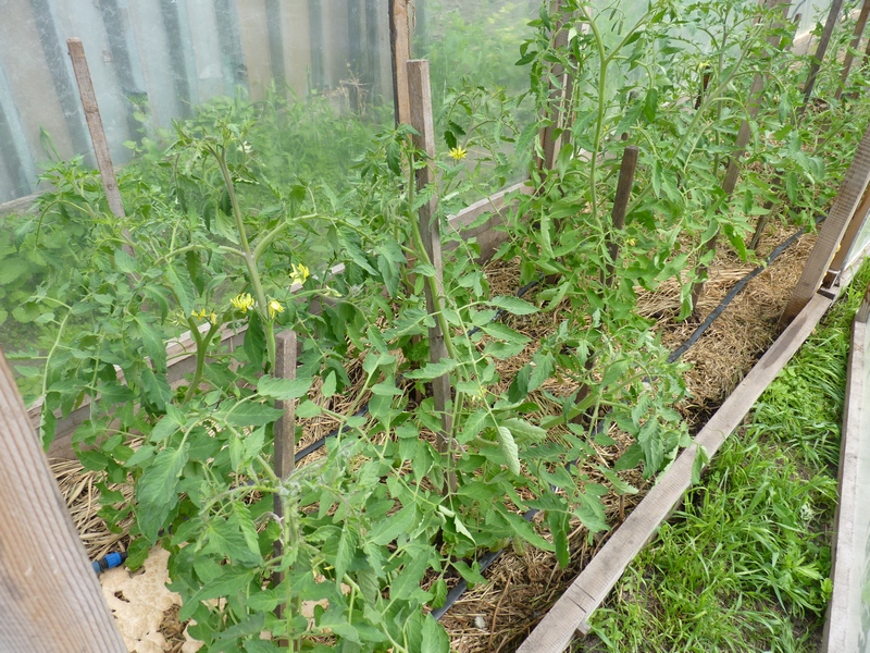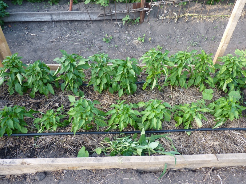 2) В теплой грядке происходит повышенная испаряемость влаги, и грунт пересыхает быстрее, чем в обычной грядке. Поэтому мы применяем мульчу для снижения испаряемости влаги и устанавливаем капельный полив.