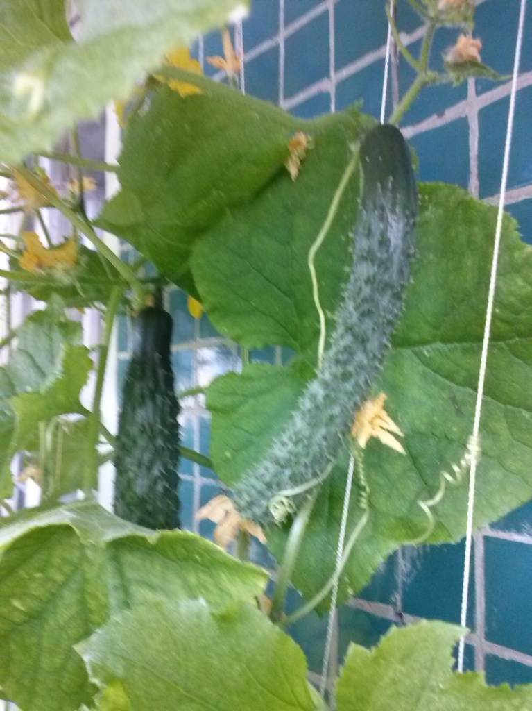 Первые огурчики начала срывать 20 мая. 25 мая сорвала два огурца «Китайских» весом – 340 и 400 грамм.