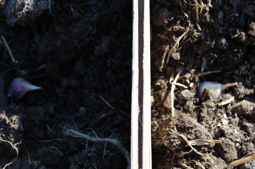 Осенью прошлого года ( 2013) мы решили подготовить грядку под чеснок по всем правилам. Подкосили отросшие сорняки, гряду разделили на две половины (по 1 м.кв каждая) пролили левую половину гряды Сияние -1 раствором 1:100 ( 100мл Сияние -1 концентрат на 10л воды). Одного ведра была достаточно для нашей гряды. Через 3 недели (конец сентября) сделали мотыгой борозды и высадили чеснок![]()
