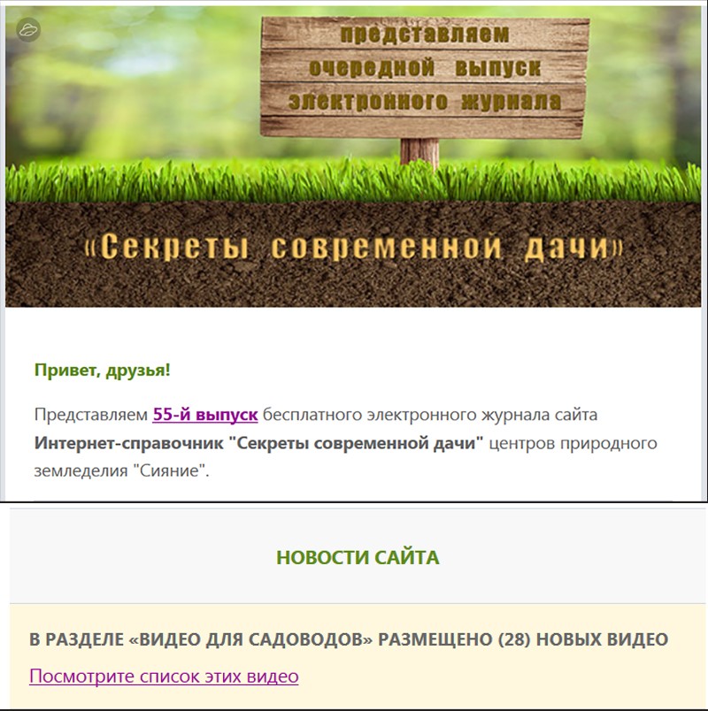 Вы можете периодически заходить в садовую видеошколу и в блоке «последнее видео» находить новые видеоуроки. Или оформить подписку на выпуск электронного журнала сайта. При этом два раза в месяц вы будете получить на ваш адрес электронной почты письмо о новых статьях сайта, а также о новых видеоуроках.