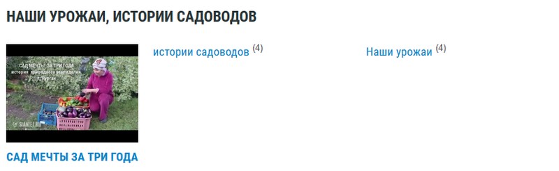 В пятом разделе «Наши урожаи, истории садоводов» вы можете увидеть, какие урожаи выращивают садоводы методами природного земледелия. А также послушать и посмотреть их истории.