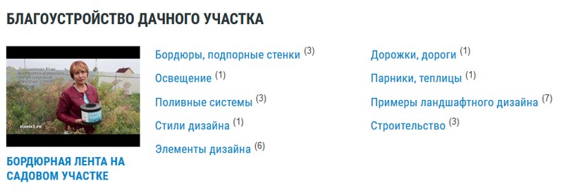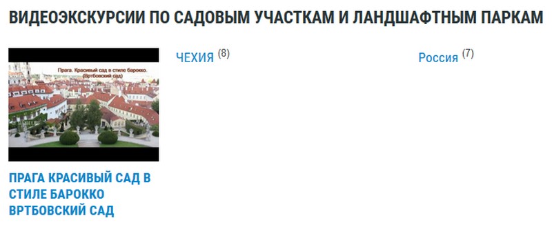 Седьмой раздел «видеоэкскурсии» посвящен примерам ландшафтного дизайна. В нем вы можете увидеть варианты оформления садовых участков, а также посмотреть на красоты ландшафтных парков.